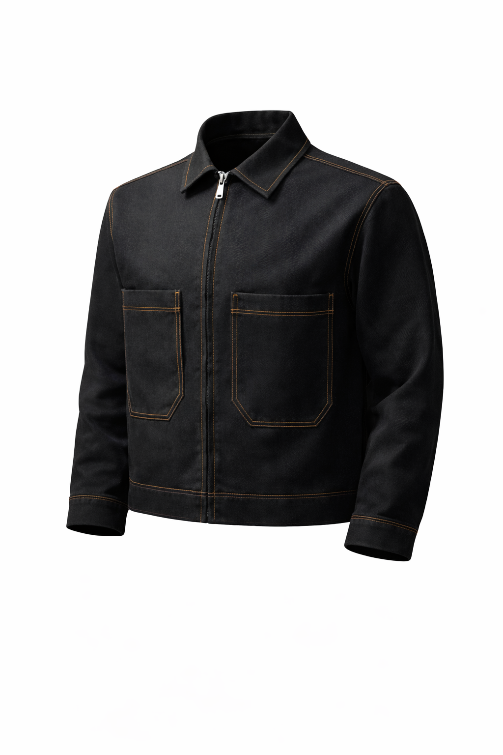 ג׳קט שחור בגזרה נקייה עם שני כיסים קדמיים, שמשלב מראה ג׳ינס מחוספס עם תחושת נוחות של כותנה איכותית.